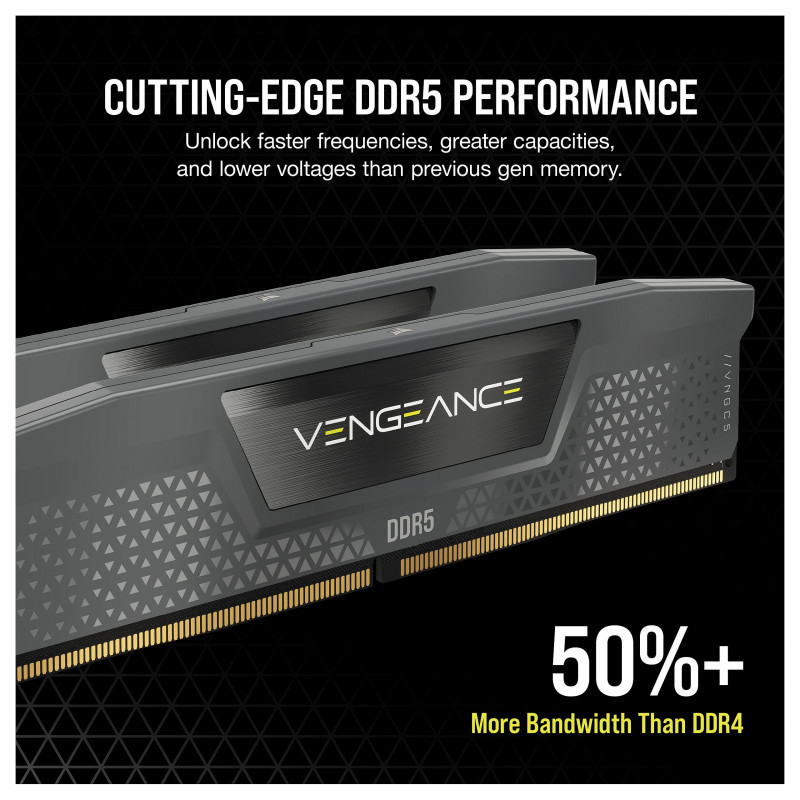 "Corsair Vengeance CMK16GX5M1E6000Z36. Component for: PC, Internal memory: 16 GB, Memory layout (modules x size): 1 x 16 GB, Internal memory type: DDR5, Memory form factor: 288-pin DIMM, CAS latency: 36"\n"VENGEANCE DDR5