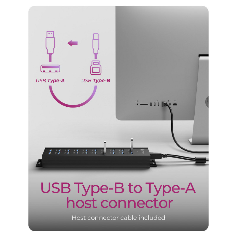 "ICY BOX IB-HUB1720-U3. Hub interfaces: USB 3.2 Gen 1 (3.1 Gen 1) Type-A. Product colour: Black, Housing material: Aluminium, LED indicators: Access, Power. Power supply type: USB, Power supply: 15 W. Width: 65 mm, Depth: 248 mm, Height: 30 mm. Package weight: 1.28 kg"\n