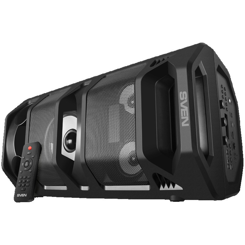 2.0 portable speaker SVEN PS-670, black, power output 2x32.5W (RMS), TWS, Bluetooth, FM, USB, microSD, LED-display, RC, lithium battery