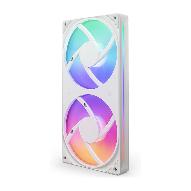 "NZXT RF-U24HF-W1. Type: Fan, Rotational speed (min): 500 RPM, Rotational speed (max): 2400 RPM, Maximum air pressure: 3.3 mmH2O, Bearing type: Fluid Dynamic Bearing (FDB). Width: 120 mm, Depth: 26 mm, Height: 240 mm. Product colour: White"\n"NZXT F Series RGB Core single-frame fans seamlessly integrate multiple fans for effortless installation while offering superior cooling, whisper-quiet performance, and striking RGB visuals.
