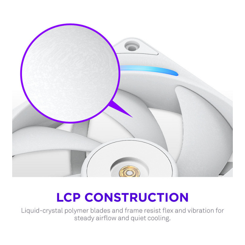 - LCP Construction: Liquid-crystal polymer blades and frame maintain their shape at high speeds, resisting flex and vibration for more powerful, consistent cooling.