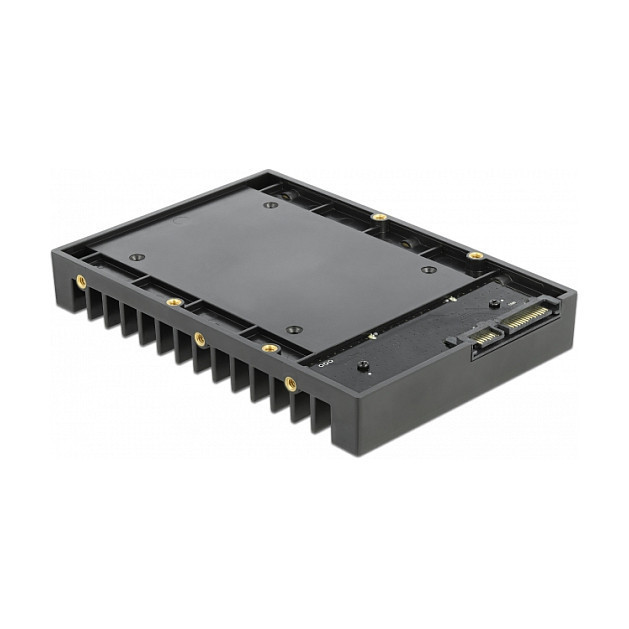 "DeLOCK 3.5″ Installation Frame for 2.5″ SATA drive black. Size (imperial): 8.89 cm (3.5""), Type: Storage drive tray, Product colour: Black. Width: 101 mm, Depth: 147 mm, Height: 20 mm. Quantity per pack: 1 pc(s)"\n"With this installation frame by Delock a 2.5″ drive, such as an SSD or HDD, can be mounted in a 3.5″ drive bay of a PC. The extensive installation options allow a secure attachment of the frame."