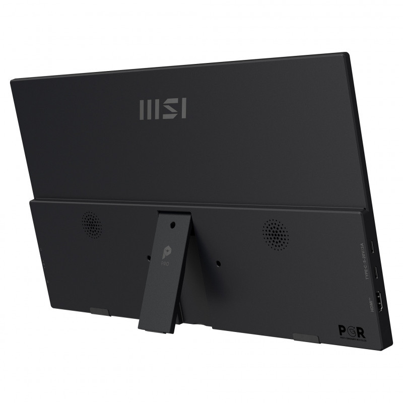 "MSI PRO MP165DE E6. Display diagonal: 39.6 cm (15.6""), Display technology: LED, Display resolution: 1920 x 1080 pixels. RMS rated power: 1 W. USB port type: USB Type-C. Product type: Portable monitor, Product colour: Black, Panel mounting interface: 75 x 75 mm. Energy efficiency class (SDR): E, Energy consumption (SDR) per 1000 hours: 7 kWh, Power source type: USB"\n"Your Personal Assistant, Anytime, Anywhere