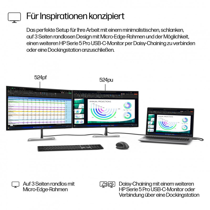 "HP Series 5 Pro 23.8 inch FHD Monitor - 524pf. Display diagonal: 60.5 cm (23.8""), Display resolution: 1920 x 1080 pixels, HD type: Full HD, Display technology: LCD, Display surface: Matt, Response time: 5 ms, Native aspect ratio: 16:9, Viewing angle, horizontal: 178°, Viewing angle, vertical: 178°. Built-in USB hub, USB hub version: 3.2 Gen 1 (3.1 Gen 1). VESA mounting, Height adjustment. Product colour: Black, Silver"\n"Reimagine what work looks like