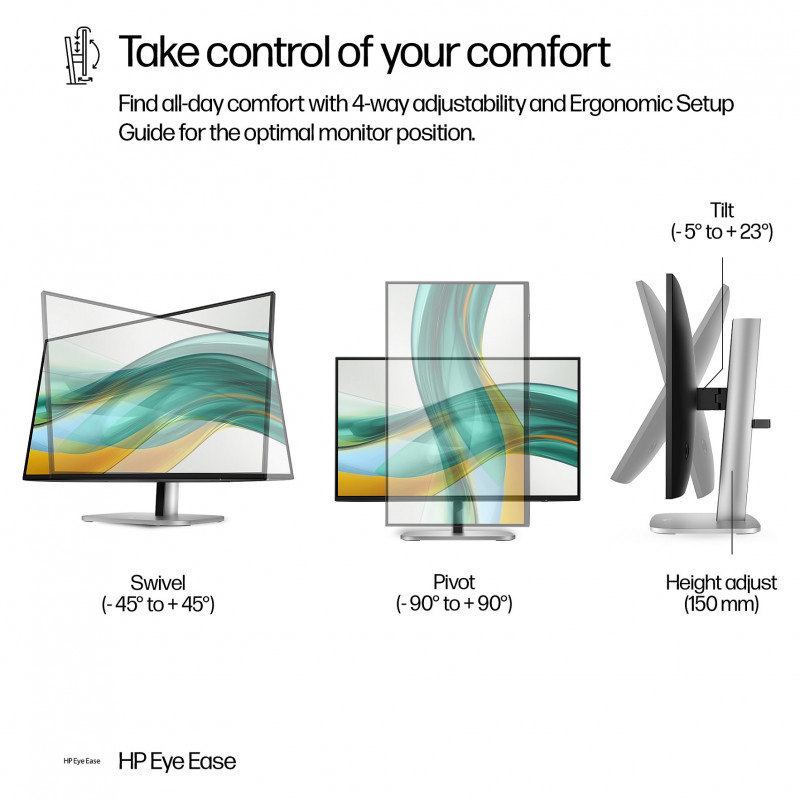 Get more out of your workday with the HP Series 5 Pro 23.8” FHD Monitor. Create the setup that works for the way you work, wherever you work, with refined visual clarity and adjustable comfort built into a sleek, modern design."