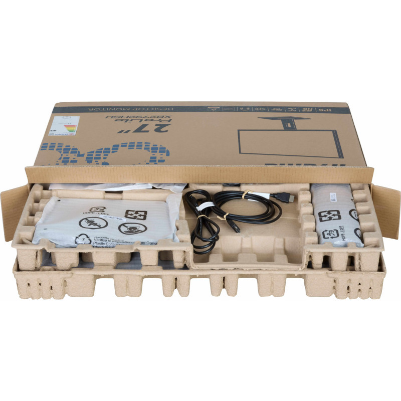 "iiyama ProLite XB2792QSU-B1. Display diagonal: 68.6 cm (27""), Display resolution: 2560 x 1440 pixels, HD type: Quad HD, Display technology: LED, Display surface: Matt, Response time: 3 ms, Native aspect ratio: 16:9, Viewing angle, horizontal: 178°, Viewing angle, vertical: 178°. Built-in speaker(s). Built-in USB hub, USB hub version: 3.2 Gen 1 (3.1 Gen 1). VESA mounting, Height adjustment. Product colour: Black"\n"The ProLite XB2792QSU is a 27'' QHD monitor ideal for professionals who need more screen space, precise image quality, and a sustainable choice. Packaged without plastic and made from 85% post-consumer recycled materials, it meets TCO Certification and EPEAT® Silver standards. With a resolution of 2560 x1440, it offers 77% more screen space than Full HD, helping you work across multiple windows and view more detail without constant scrolling. Its IPS panel delivers sharp detail, vibrant colours and wide viewing angles, while the frameless design creates a sleek, distraction‑free workspace. To take care of your eye health, it complies with the Eye Safe and Eye Comfort Certifications and the 150mm height‑adjustable ergonomic stand ensures all‑day comfort."