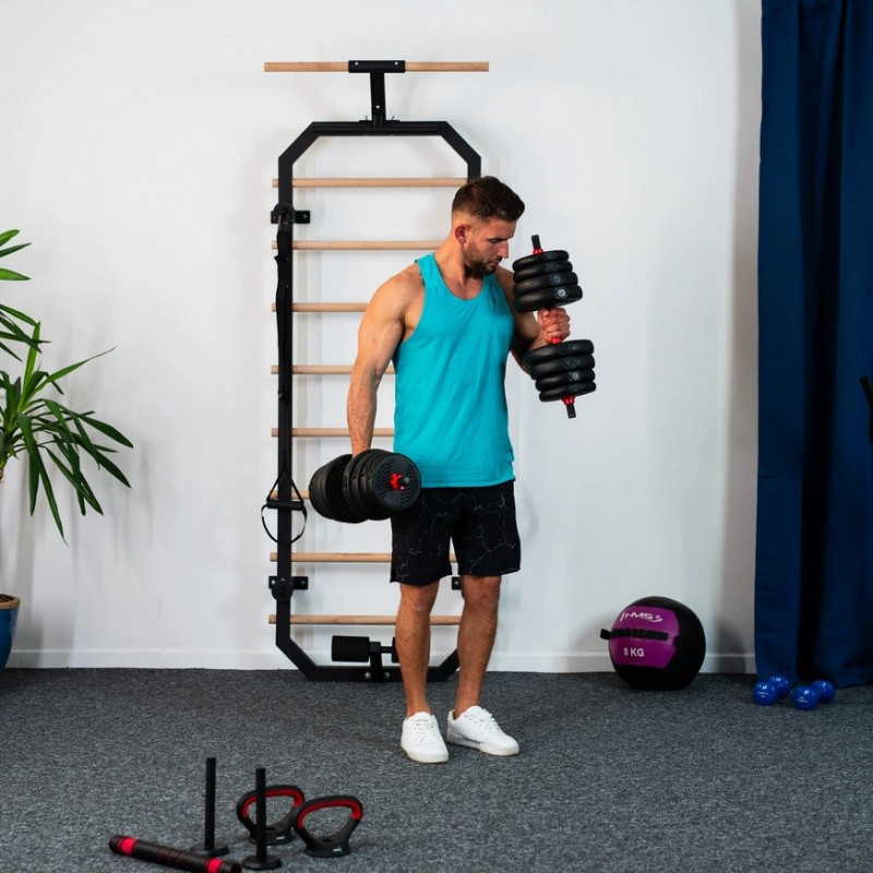 6IN1 HMS SGN120 SVARMENŲ RINKINYS (ŠTANGOS, HANTELIAI IR SVARMENYS) 20 KG