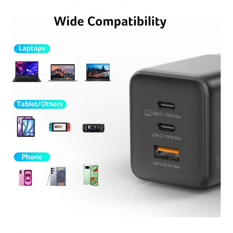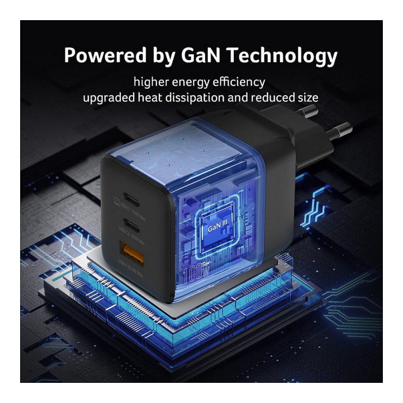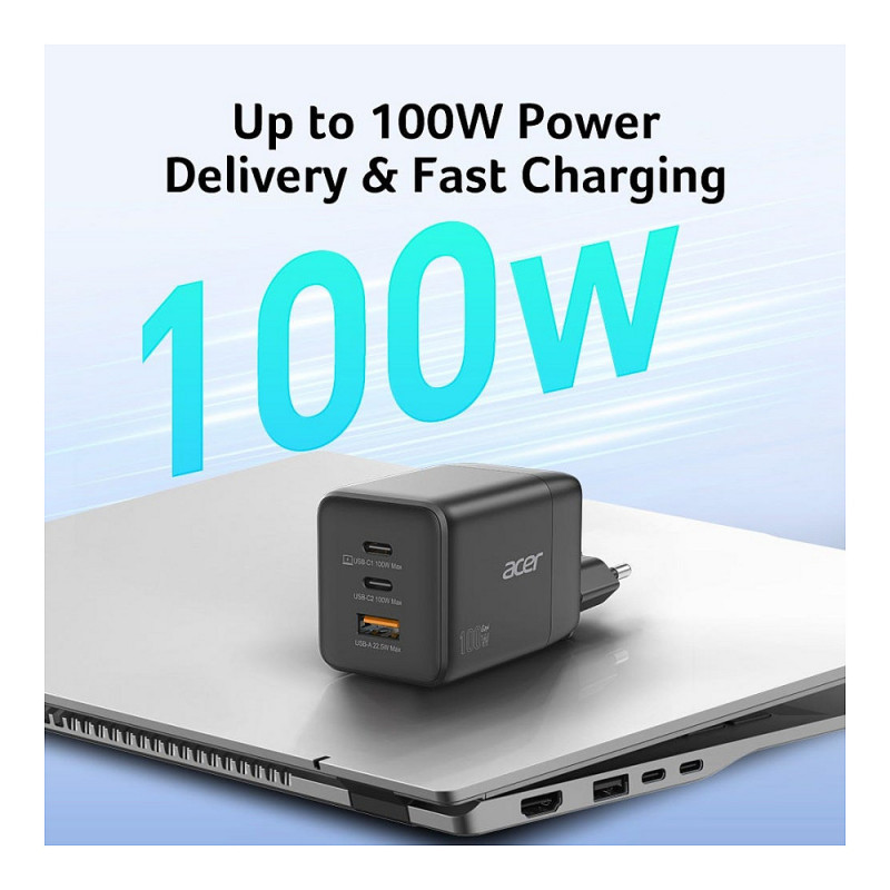 Acer GaN 100w 2 x USB-C + 1x USB-A ports. black