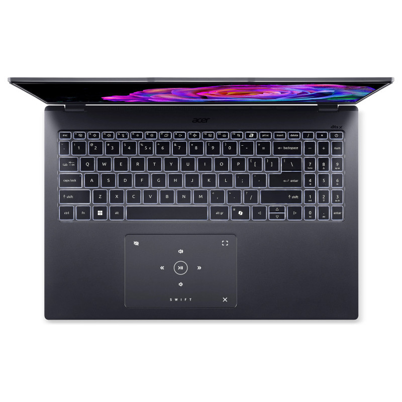 Swift Go 16 combines effortless thin and light mobility with a streamlined, laser-etched cover that opens 180° and makes a refined statement anywhere. A multi-control touchpad enables precise control over your media and video calls.