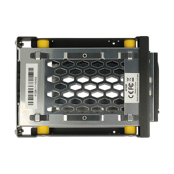 "DeLOCK 47228. Compatible chassis type: Universal, Type: HDD Cage, Material: Metal"\n"This solid metal mobile rack by Delock can be installed into a free 3.5″ bay of a PC and ensures a 360° vibration protection against horizontal and vertical vibrations through the built-in rubber bumpers. A 2.5″ SATA or SAS hard drive can be screwed into the frame. For operation with a SAS drive, a SAS controller is required. The mobile rack is equipped with a key lock to prevent unauthorised access. The hot swap function allows the exchange of the hard disk drive during operation. Furthermore the SATA plug on the outside of the device has a locking port, which will ensure the SATA cables click into place, and are protected against vibrations. The mobile rack can be used wherever the PC is subject to vibrations."