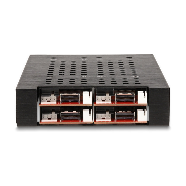 This solid metal mobile rack by Delock can be installed into a 3.5″ bay of a PC and provides four M.2 slots in 2280, 2260, 2242 or 2230 format.