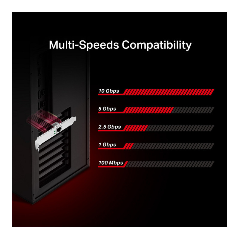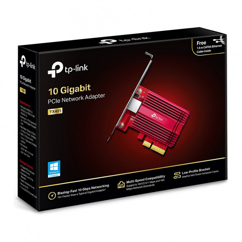 TP-Link TX401 – tai 10 Gigabit spartos PCIe tinklo plokštė, skirta užtikrinti itin greitą ir stabilų ryšį kompiuteriuose, serveriuose ar darbo stotyse. Naudodamas PCI Express 3.0 x4 jungtį, šis adapteris siūlo patikimą duomenų perdavimo greitį ir puikiai tinka tiek reikliems tinklo darbams, tiek namų NAS serveriams ar srautiniam turinio perdavimui.