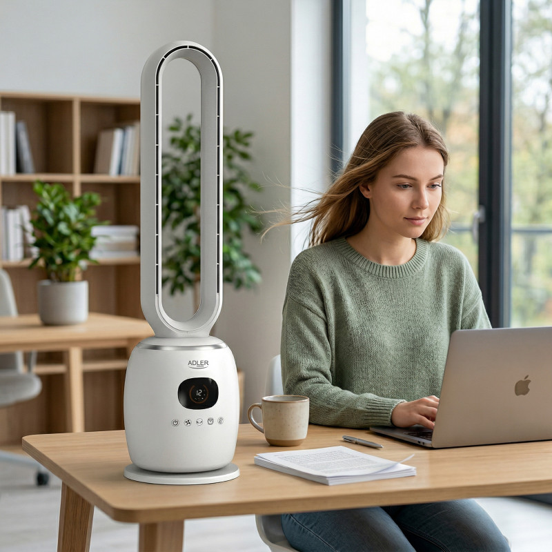 Adler Bladeless Fan | AD 7344 | Tower Fan | White | Diameter 23 cm | Number of speeds 3 | Oscillation | 60 W | Remote control