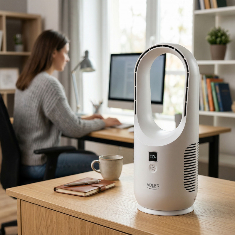 Adler Bladeless Rechargeable Fan | AD 7343 | Desk Fan | Diameter 14 cm | Number of speeds 3 | White