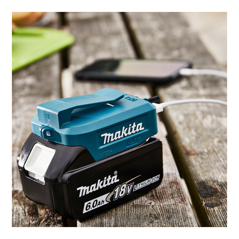 "Makita DECADP05. Suitable for: Universal, Power source type: USB, Compatible battery technologies: Lithium-Ion (Li-Ion). Product colour: Blue. Width: 72 mm, Depth: 102 mm, Height: 43 mm. Quantity per pack: 1 pc(s). Warranty period: 3 year(s)"\n