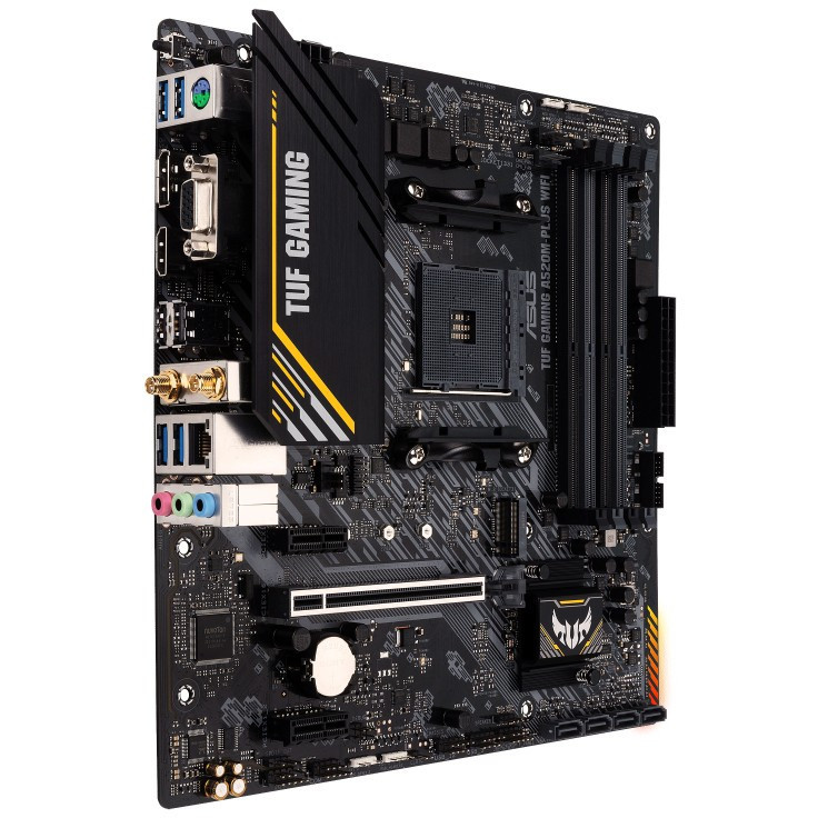 TUF Gaming A520M-Plus WIFI distills essential elements of the latest AMD platform and combines them with game-ready features and proven durability. Engineered with military-grade components, an upgraded power solution and a comprehensive set of cooling options, this motherboard delivers rock-solid performance with unwavering gaming stability.