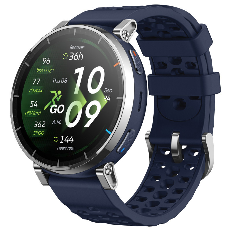 "Amazfit W2558GL2N. Display diagonal: 3.35 cm (1.32""), Display technology: AMOLED, Display resolution: 466 x 466 pixels, Touchscreen. GPS (satellite). Battery capacity: 365 mAh. Weight: 38 g. Band material: Silicone, Band colour: Blue"\n