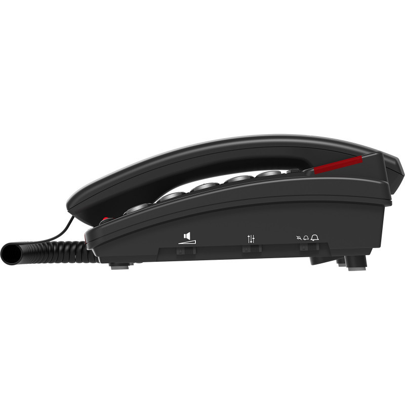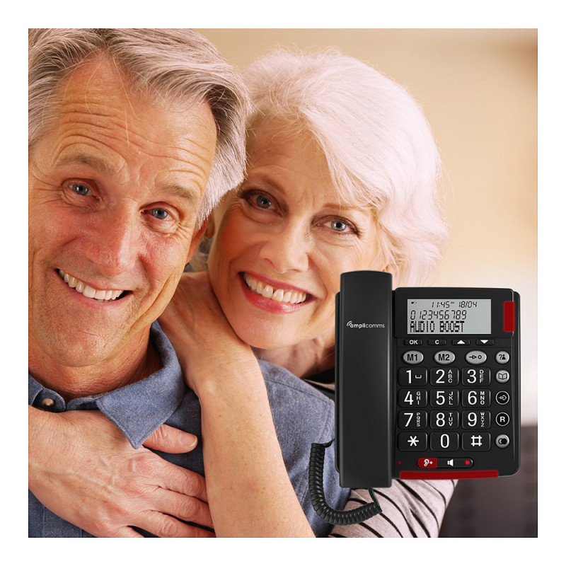 "amplicomms Bigtel 48 Plus. Type: Analog telephone, Handset type: Wired handset. Speakerphone, Phonebook capacity: 50 entries. Caller ID. Product colour: Dark Grey. Number of handsets included: 1"\n"Corded Big Button Phone with Hands-free function, large display, Two Programmable Numbers, Audio-Boost and Extra Loud Ringers. Hearing Aid Compatible"