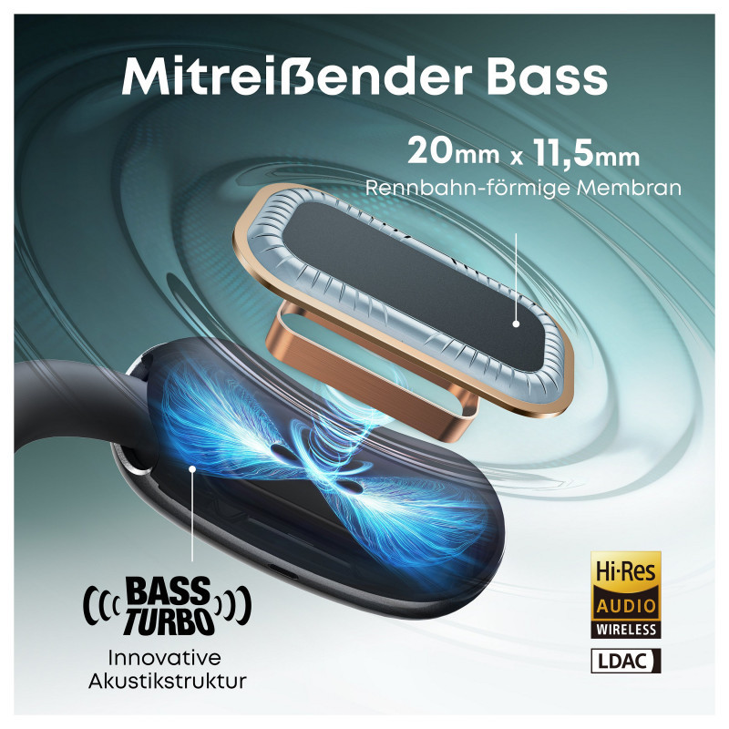 ANKER Soundcore AeroFit 2 AI black Open-Ear-Kopfhrer 35 Stunden Wiedergabezeit IP55 inkl. KI Assisent und bersetzung
