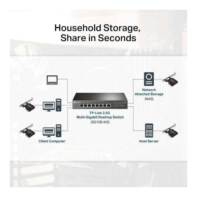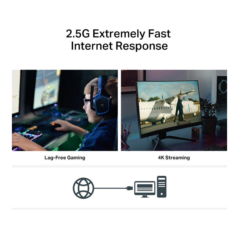 Šis adapteris ypač naudingas vietiniams ryšiams, nes padeda sukurti itin greitą ryšį tarp pagrindinio saugojimo įrenginio ir kitų kompiuterių jūsų vietiniame tinkle. Dėl 2.5G greičio jūsų interneto prieiga bus optimizuota, o žaidimai, transliacijos ir didelių duomenų atsarginės kopijos bus daug greitesni ir sklandesni.