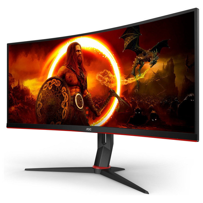 "AOC G2 CU34G2XP. Display diagonal: 86.4 cm (34""), Display resolution: 3440 x 1440 pixels, HD type: UltraWide Quad HD, Display technology: LED, Response time: 5 ms, Native aspect ratio: 21:9, Viewing angle, horizontal: 178°, Viewing angle, vertical: 178°. Built-in USB hub. VESA mounting, Height adjustment. Product colour: Black, Red"\n"Unleash visual perfection with the CU34G2XP/BK, a 34-Inch Ultrawide Curved Monitor Offering WQHD Resolution and 180Hz Refresh Rate