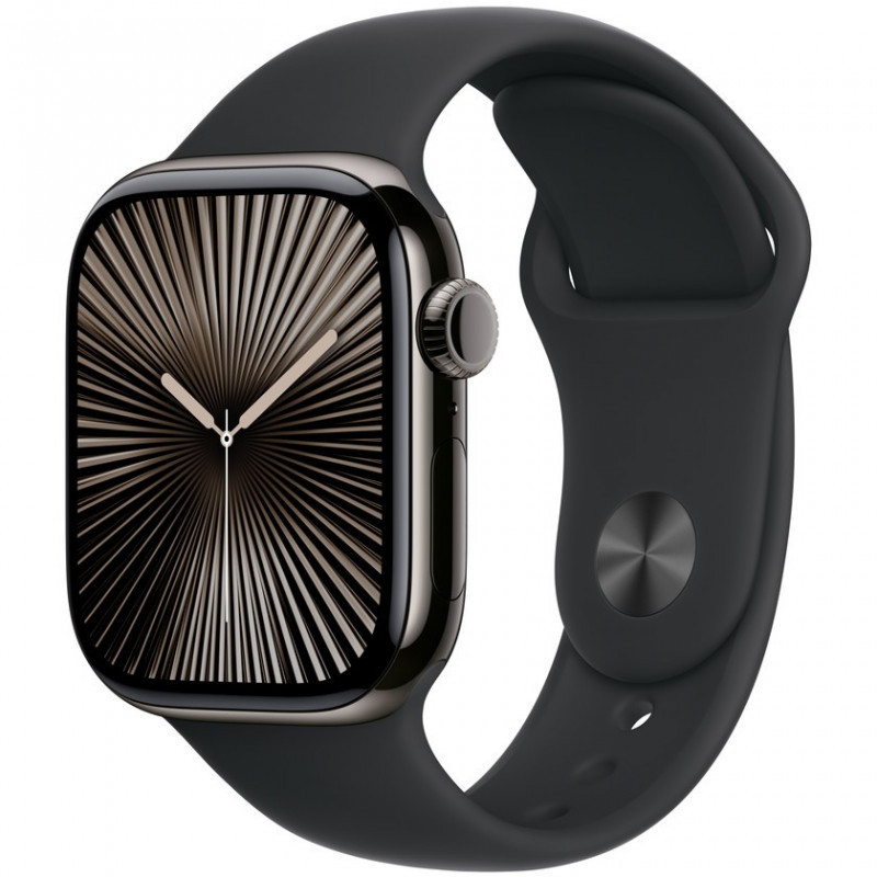 "Apple MXLJ3ZM/A. Product type: Band, Compatible device type: Smartwatch, Product colour: Black. Wrist size range: 130 - 180 mm. Quantity per pack: 1 pc(s)"\n"Made from a custom high-performance fluoroelastomer, the Sport Band is durable and strong, yet surprisingly soft. The smooth, dense material drapes elegantly across your wrist and feels comfortable next to your skin. An innovative pin-and-tuck closure ensures a clean fit.