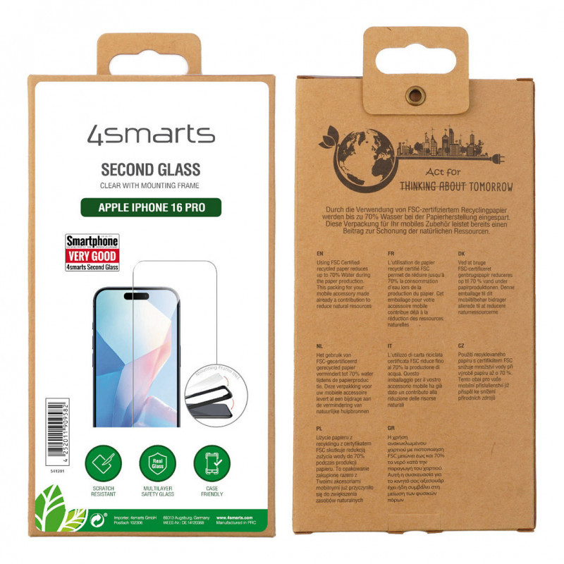 "4smarts 541201. Brand compatibility: Apple, Compatibility: iPhone 16 Pro, Protection features: Drop proof, Impact resistant, Scratch resistant. Material: Tempered glass, Product colour: Transparent. Quantity per pack: 1 pc(s)"\n"Tailor-made protection