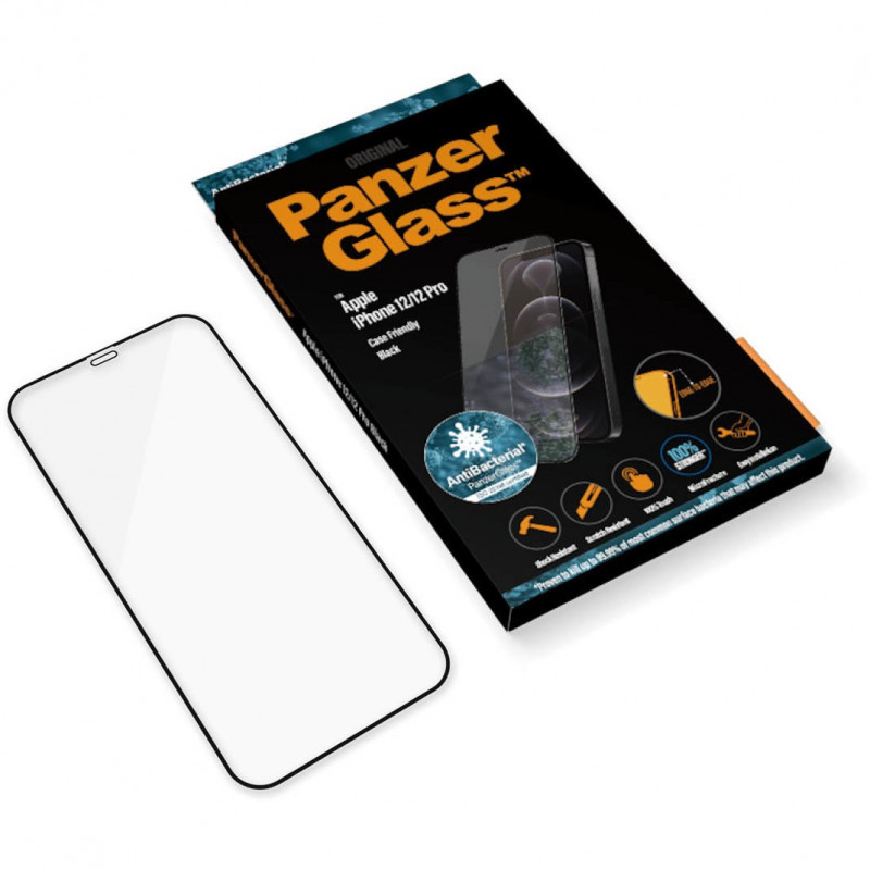 "PanzerGlass ® Screen Protector iPhone 12 | 12 Pro | Edge-to-Edge. Brand compatibility: Apple, Compatibility: Apple - iPhone 12, Apple - iPhone 12 Pro. Dry application. Protection features: Scratch resistant, Shock resistant, Anti-bacterial. Material: Tempered glass, Polyethylene terephthalate (PET), Silicone, Product colour: Transparent. Quantity per pack: 1 pc(s)"\n"Protect your phone from the hazards of everyday life with PanzerGlass®. Accidental bumps against sharp-edged dangers in your pocket or crushing falls onto stone-hard pavements are no match for this scratch and shock-resistant screen protector. It even has a smudge-free coating with antibacterial effect that reduces traces of fingerprints and kills up to 99.99% of all common surface bacteria. The screen protector is easy to apply and once installed, you’ll never again fear the sight of your phone tumbling to the ground. This may never happen, but if it does, you’ll regret not having clicked “add to cart”.