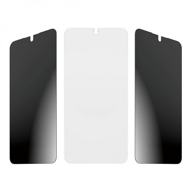 „Privacy“ filtras naudoja specialią optinę technologiją, kuri padaro ekraną aiškiai matomą tik žiūrint tiesiai iš priekio. Taip pat stiklas turi Ultra-Wide Fit dizainą, kuris dengia beveik visą priekinį ekraną, paliekant vietos dėklui.