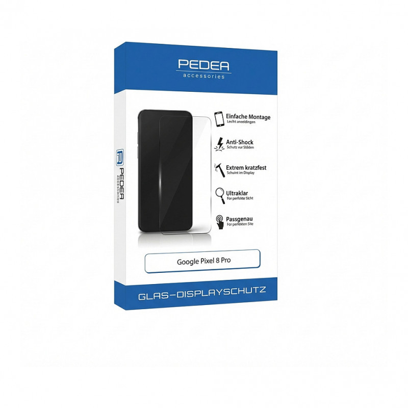 "PEDEA 12170005. Brand compatibility: Google, Compatibility: Pixel 8 Pro, Protection features: Scratch resistant, Shock resistant. Privacy filtering function, Product colour: Transparent. Quantity per pack: 1 pc(s)"\n