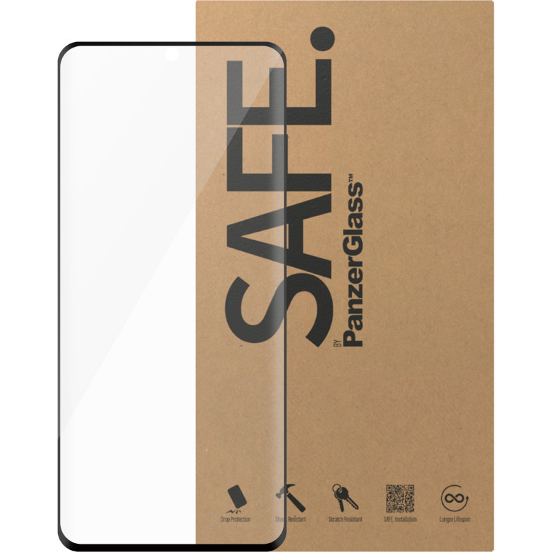 "PanzerGlass SAFE. by ® Screen Protector w. Black Frame Samsung Galaxy S20 5G | Ultra-Wide Fit | BULK. Brand compatibility: Samsung, Compatibility: Samsung - Galaxy S20 5G. Dry application. Protection features: Scratch resistant, Shock resistant. Material: Tempered glass, Polyethylene terephthalate (PET), Silicone, Product colour: Transparent. Quantity per pack: 50 pc(s)"\n"Are you in love with your preloved phone? Then protect it as if it were brand new with an original screen protector from SAFE. by PanzerGlass®️. Then maybe one day you can pass it on to someone else that will love it just as much. It’s the new circle of phone life. The longer we keep our devices alive, the more we postpone the need to produce new devices, but hey … you already knew that. You just bought a refurbished phone.
