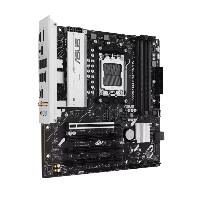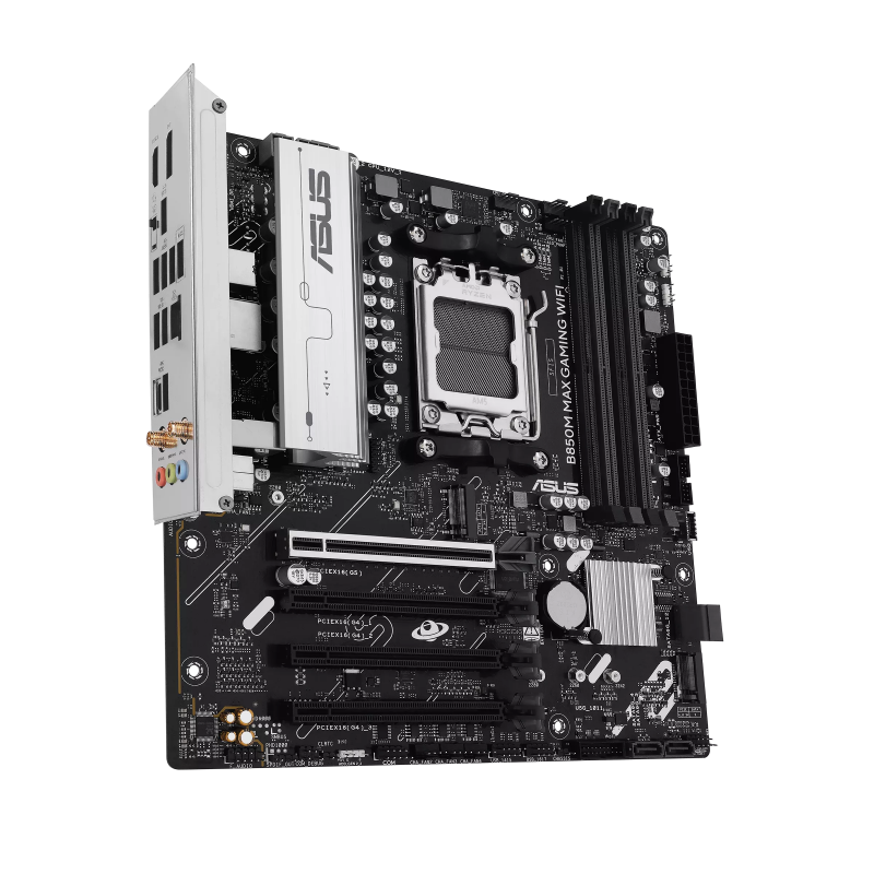 Pagrindinės Plokštės | Asus B850M MAX GAMING WIFI | Processor family AMD | Processor socket AM5 | DDR5 | Supported hard disk drive interfaces SATA, M.2 | Number of SATA connectors 4