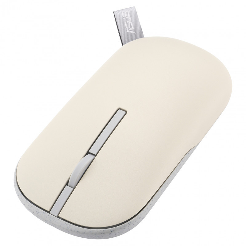 "ASUS Marshmallow Mouse MD100. Form factor: Ambidextrous. Movement detection technology: Optical, Device interface: RF Wireless + Bluetooth, Movement resolution: 1600 DPI, Buttons type: Pressed buttons, Buttons quantity: 3, Scroll type: Wheel. Power source: Batteries. Works on any surface. Product colour: Beige, Green"\n"The compact ASUS Marshmallow Mouse MD100 adds a dash of vibrancy to your day with its quick-switch magnetic covers, and a handy strap that makes it easy to carry around. For safety and better hygiene, the covers include ASUS Antibacterial Guard treatment to inhibit the growth of harmful bacteria. ASUS Marshmallow Mouse MD100 also offers easily adjustable DPI levels for varying degrees of precision, plus 100% PTFE mouse feet for a smooth glide on any flat surface."