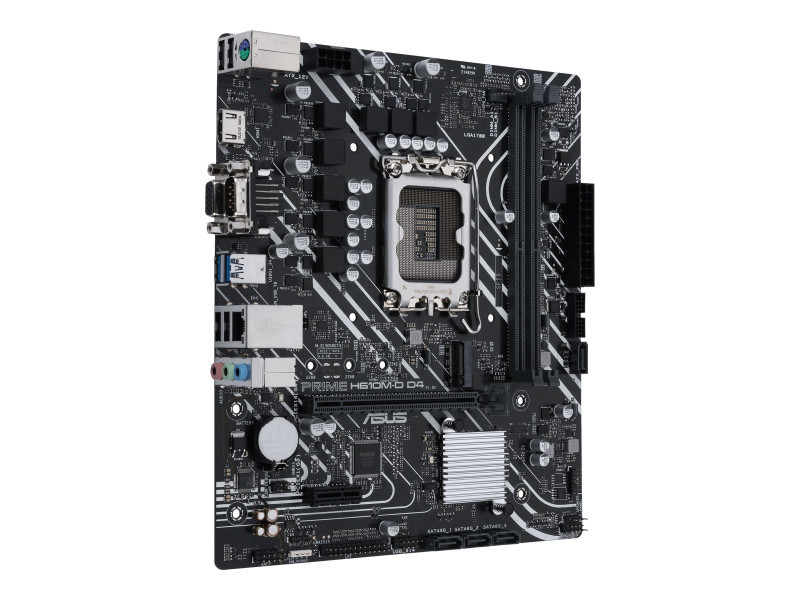 Asus | PRIME H610M-D D4 | Processor family Intel | Processor socket LGA1700 | DDR4 DIMM | Memory slots 2 | Supported hard disk drive interfaces SATA, M.2 | Number of SATA connectors 4 | Chipset Intel H610 | mATX