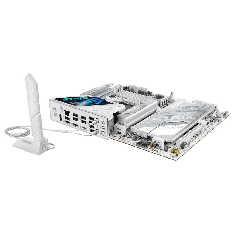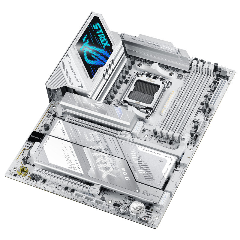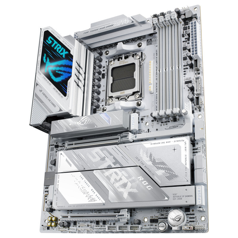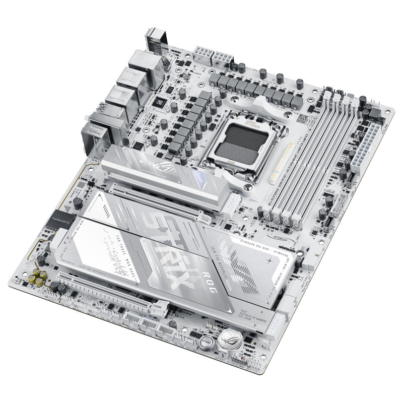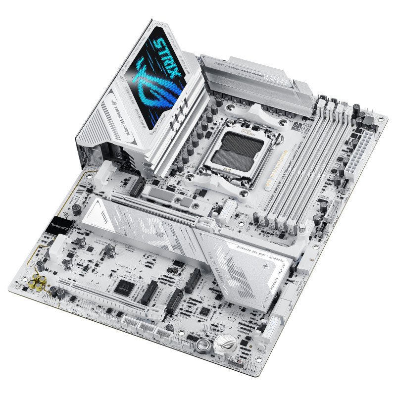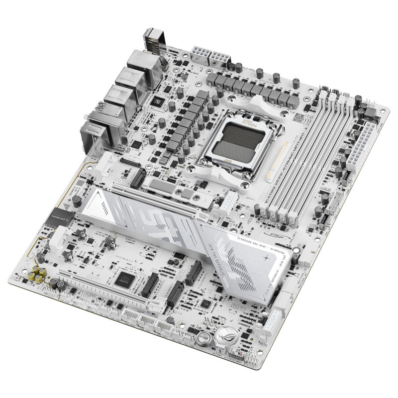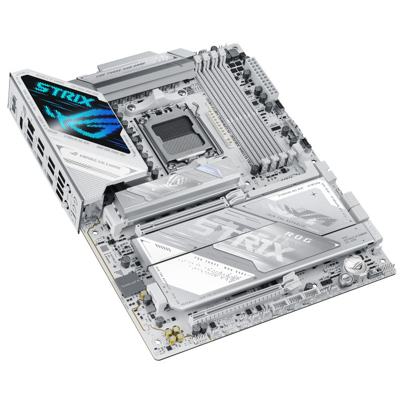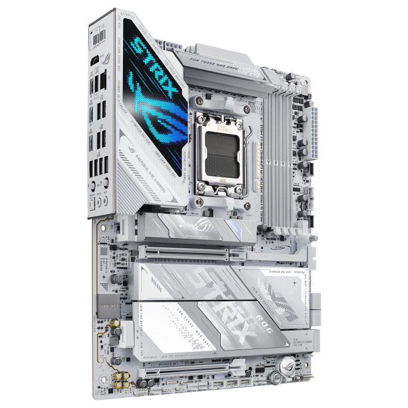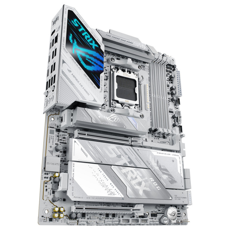Elevate your build with the ROG Strix X870E-A Gaming WiFi7 Neo, featuring a sleek white aesthetic and a design that maximizes the performance of AMD Ryzen™ 9000 Series processors. PCIe® 5.0, ASUS AI features including AI Cache Boost and ASUS AI Advisor—and exclusive memory technologies such as NitroPath DRAM Technology, DIMM Fit Pro, and AEMP—simplify setup and deliver optimized DDR5 performance. High-speed connectivity is boosted by dual USB4® Type-C ports, WiFi 7, and Realtek® 5G Ethernet, while enhanced M.2 cooling helps ensure stability for demanding workloads. It is the ultimate blend of style and performance."