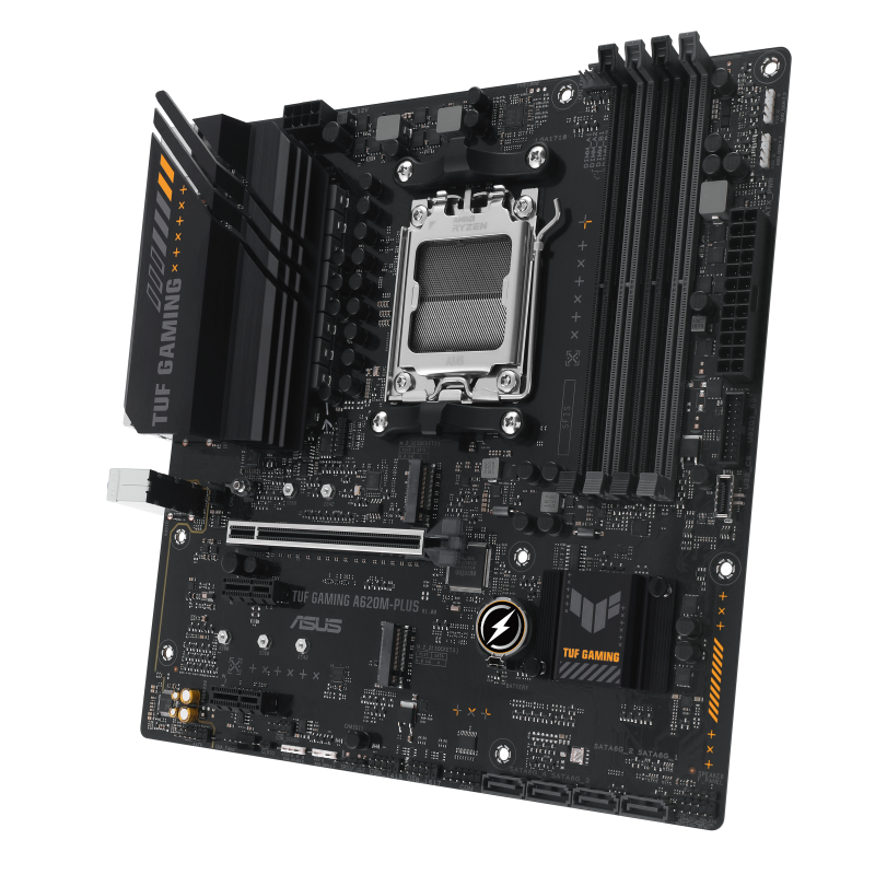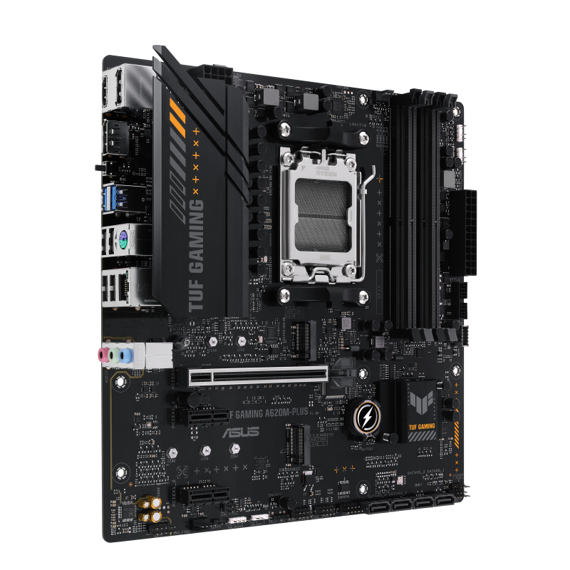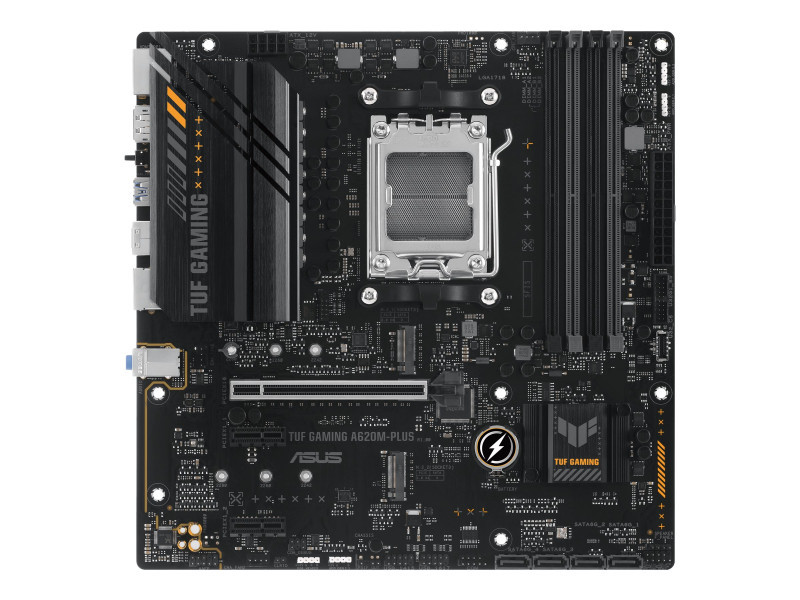 Pagrindinės Plokštės | Asus | TUF GAMING A620M-PLUS | Processor family AMD | Processor socket AM5 | DDR5 DIMM | Memory slots 4 | Supported hard disk drive interfaces SATA, M.2 | Number of SATA connectors 4 | Chipset AMD A620 | Micro-ATX