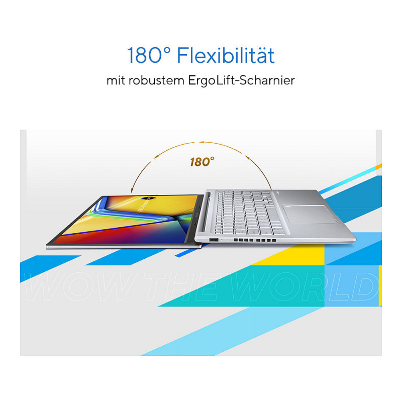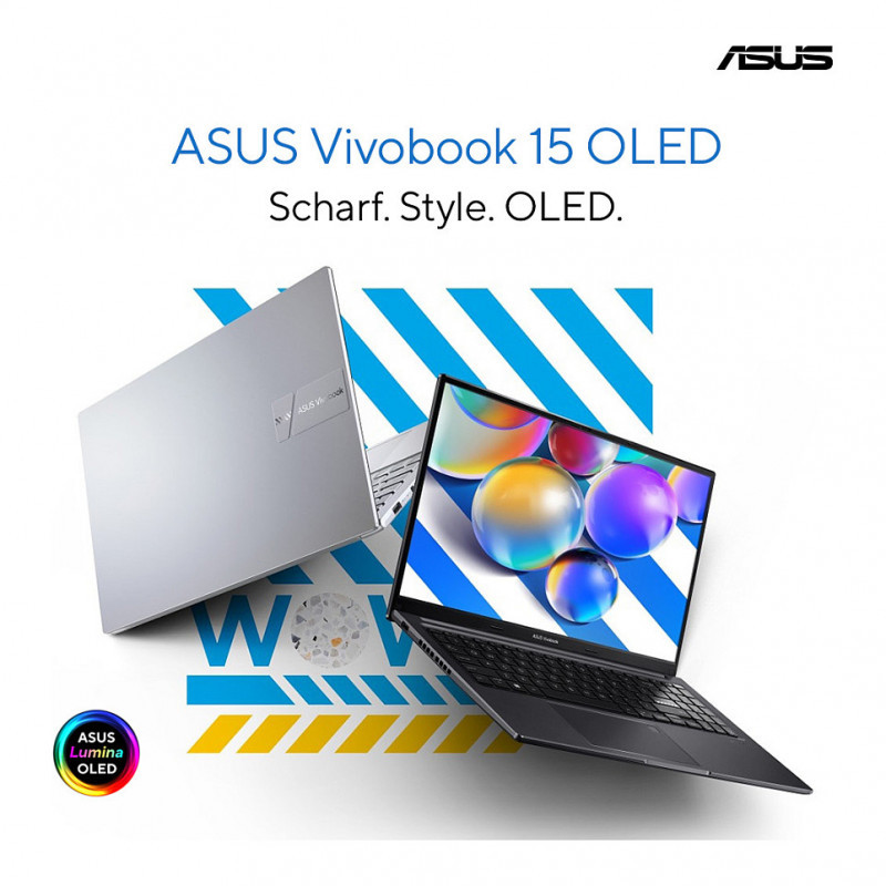 "ASUS Vivobook 15 OLED X1505VA-MA925. Product type: Laptop, Form factor: Clamshell. Processor family: Intel® Core™ i9, Processor model: i9-13900H. Display diagonal: 39.6 cm (15.6""), HD type: Wide Quad HD+, Display resolution: 2880 x 1620 pixels. Internal memory: 8 GB, Internal memory type: DDR4-SDRAM. Total storage capacity: 512 GB, Storage media: SSD. On-board graphics card model: Intel® UHD Graphics. Product colour: Silver. Weight: 1.7 kg"\n"Let your vision shine