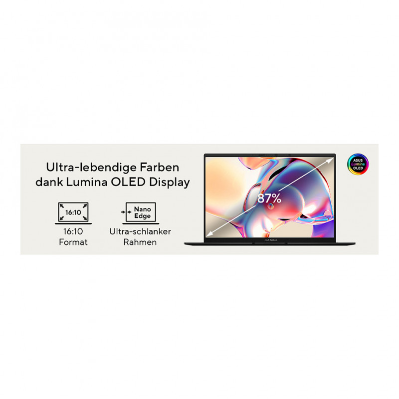 Elevate your experience with the sleek and sophisticated Zenbook 14 ultraportable. Its thin-and-light design houses the power of the latest AI-enabled AMD Ryzen™ AI 7 350 Processor, which make AI tools fly, along with AMD Radeon™ 860M graphics. A long-lasting battery ensures all-day power, and there’s a full complement of I/O ports for enhanced connectivity. Its 180° hinge allows easy sharing, and you can dive into a world of sensory delight with the vibrant ASUS Lumina OLED display and cutting-edge super-linear speakers, while embracing the environmentally conscious design that exudes eco-elegance."