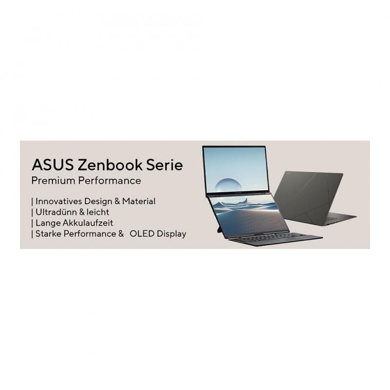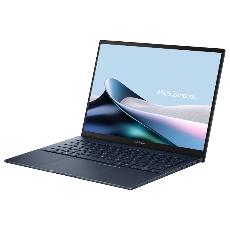 "ASUS Zenbook 14 OLED UX3405CA-QL637W. Product type: Laptop, Form factor: Clamshell. Processor family: Intel Core Ultra 7, Processor model: 255H. Display diagonal: 35.6 cm (14""), HD type: WUXGA, Display resolution: 1920 x 1200 pixels. Internal memory: 16 GB, Internal memory type: LPDDR5x-SDRAM. Total storage capacity: 1 TB, Storage media: SSD. On-board graphics card model: Intel Arc 140T. Operating system installed: Windows 11 Home. Product colour: Blue. Weight: 1.28 kg"\n"New Zen with AI