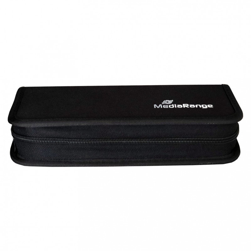 "MediaRange BOX99. Compatible memory cards: SD, SDHC, SDXC, Cards capacity: 5 cards, Material: Nylon. Width: 256 mm, Depth: 110 mm, Height: 49 mm. Quantity per pack: 1 pc(s), Package width: 256 mm, Package depth: 110 mm"\n"MediaRange media storage wallets are perfect for storing your flash media and providing optimal protection when you are on-the-go. Our wallets, with a robust zipper, protect your USB flash drives and SD memorycards from dirt and damage."