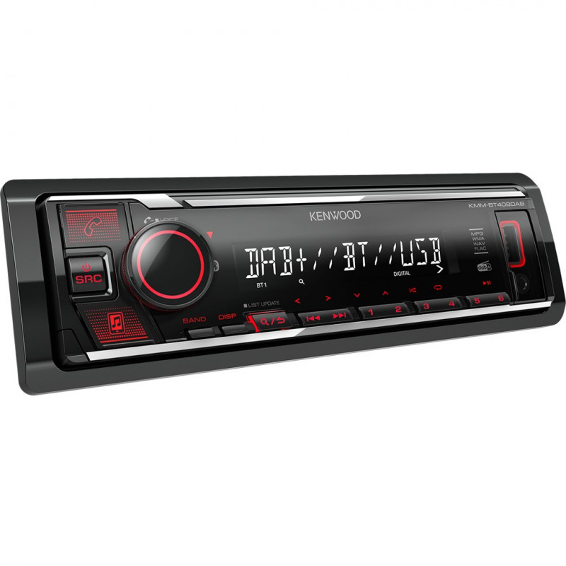"Kenwood Electronics KMM-BT408DAB. Product colour: Black, DIN size: 1 DIN, Output power: 88 W. Audio formats supported: AAC, FLAC, MP3, WAV, WMA. Display type: LCD, Illumination colour: White. USB version: 1.1/2.0, USB port position: Front, Headphone connectivity: 3.5mm. Supported radio bands: AM, DAB+, FM, FM band range: 87.5 - 108 MHz, LW band range: 153 - 279000 kHz"\n"Enjoy convenient control. Cristal clear Digital Radio DAB+. Built-in Bluetooth technology for hands-free calls and music streaming and the ability to use your smartphone like a wireless remote control. The Digital Sound Processor, Time Alignment & 13-Band EQ ensures you of optimal sound tuning enhancements."