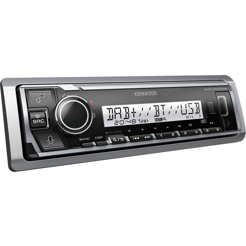 "Kenwood KMR-M508DAB. Product colour: Black, Output power: 88 W, Frequency range: 20 - 20000 Hz. Display type: LCD, Display digits: 13 digits, On Screen Display (OSD) languages: German, English, Spanish, French, Russian. Bluetooth range: 10 m, Bluetooth transmitter power: 4 dBm, USB version: 1.1/2.0. Supported radio bands: AM, DAB+, FM, LW, MW, DAB tuner: DAB+. Width: 182 mm, Depth: 100 mm, Height: 53 mm"\n"Marine Digital Media Receiver with Digital radio DAB+, Bluetooth technology & Amazon Alexa voice service.