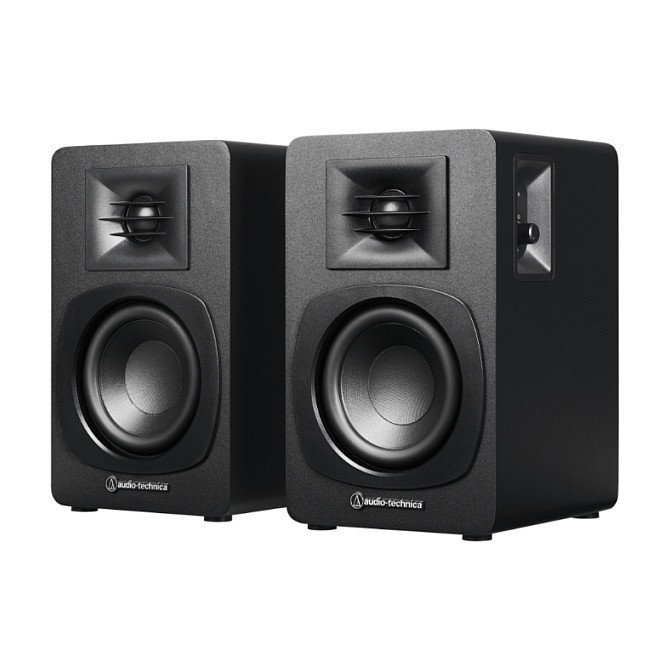 "Audio-Technica AT-SP3X. Recommended usage: Home. Speaker type: 2-way, Audio output channels: 2.0 channels, Number of drivers: 1. Connectivity technology: Wired & Wireless. RMS rated power: 30 W, Frequency range: 55 - 20000 Hz. Remotely operated, Product colour: Black"\n"Perfect for use with turntables, computers, smartphones or other devices, the AT-SP3X powered bookshelf speakers deliver rich, full-range audio via a wired or wireless connection. These compact, unobtrusive speakers elevate the listening experience in any room. They feature 3"" woofers and 1.1"" tweeters specially tuned by a built-in DSP to produce powerful, well-balanced sound for music, movies, and more.