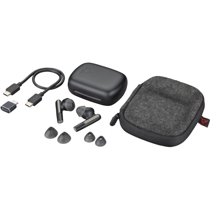 "Poly Voyager Free 60 UC Carbon Black Earbuds +BT700 USB-C Adapter +Basic Charge Case. Product type: Headset. Connectivity technology: Wireless, Bluetooth. Recommended usage: Calls/Music. Wireless range: 30 m. Product colour: Black"\n"True wireless earbuds for work and life