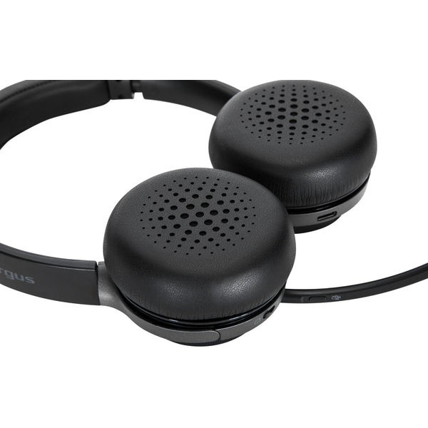 "Targus AEH104GL. Product type: Headset. Connectivity technology: Wired & Wireless, Bluetooth. Recommended usage: Calls/Music. Weight: 160 g. Product colour: Black"\n"Boost your productivity and go hands-free with the Targus® Wireless Bluetooth® Stereo Headset. Using a headset frees up your hands to take notes, multitask, and comfortably take calls without cradling a phone between your neck and shoulders. With a full charge on its 410 mAh Lithium polymer battery, this headset supports 16+ hours of talk or playback time so it’s ready to work when you are, plus you can keep the headset topped up using USB-C® charging cable (included). Although this headset is equipped with Bluetooth® for wireless convenience, the 3.5 mm auxiliary (Aux) cable (included) offers an optional wired connection.