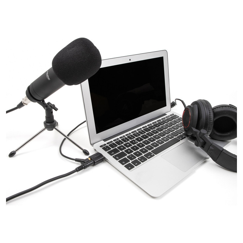 At the 3.5 mm jack microphone input of this adapter, for example, a PC microphone can be connected and therefore high-quality audio recordings with a maximum sampling rate of 24 bit / 48 kHz can be created. This makes the adapter ideal for video chats, streaming and gaming.