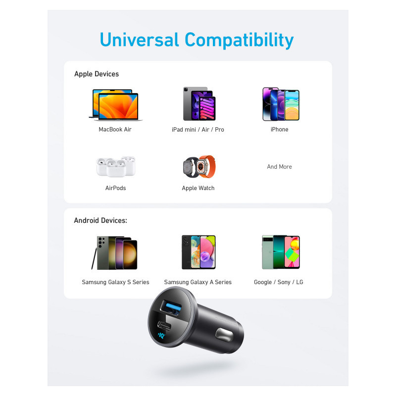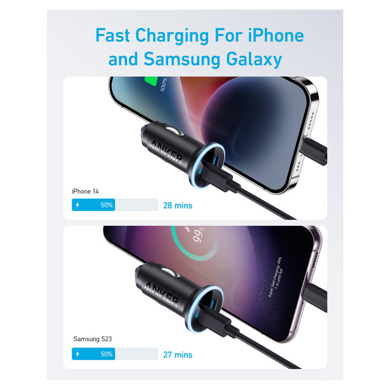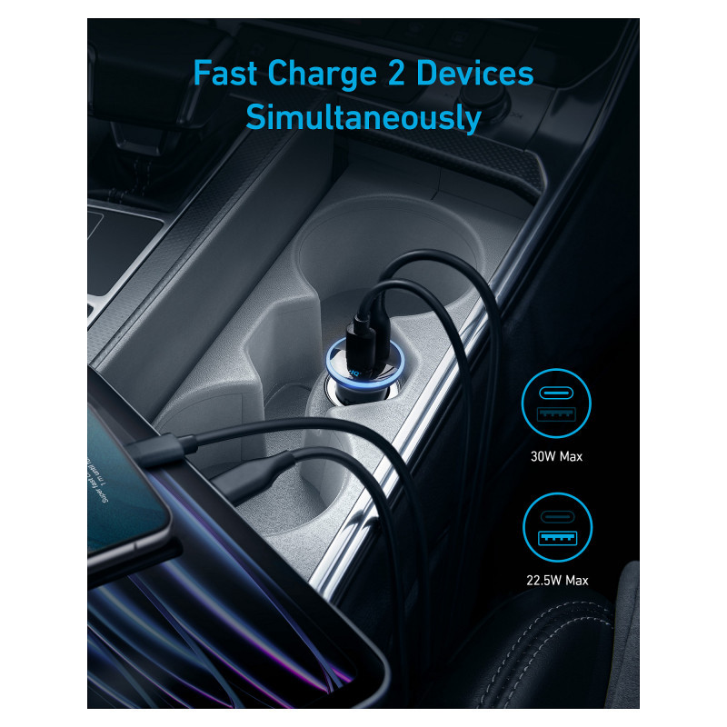Anker Innovations Anker 323 - Auto-Netzteil - 52.5 Watt - 3 A - IQ 3.0, Fast Charge - 2 Ausgabeanschlussstellen (USB, 24 pin USB-C)