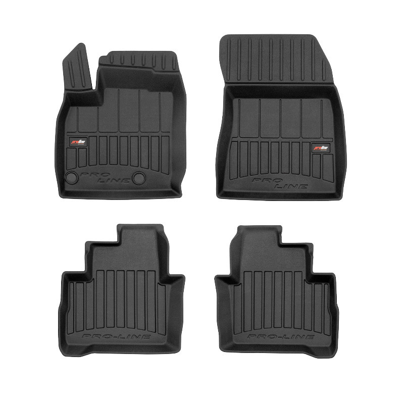 Guminiai ProLine 3D kilimėliai: (aukštos kokybės plastiko, gumos mišinys / TPE, komplektas - 4vnt., juodi, krašto aukštis 7 cm, montavimo būdas - spaustukai). AUTOMOBILIŲ KILIMĖLIAI FROGUM 3D PROLINE LUXURY • Dėl naujoviškos 3D skenavimo technologijos atitinka idealiai; • Kraštai papildomai apsaugoti – aukštis 7 cm, visada švarus automobilis; • Itin patvari medžiaga su unikalia neslystančia struktūra, atspari nešvarumams. • Išskirtinis stabilumas dėl spaustukų – lengvai montuojama spustelėjus; • Pakojo zonos apsauga – komfortas, leidžiantis nuleisti vairuotojo koją; 3D ProLine aukštos kokybės guminiai kilimėliai padeda išlaikyti automobilį švarų. Modernus ir funkcionalus dizainas, ir ypač aukštas kraštas garantuoja efektyvų vandens ir purvo surinkimą ir neleidžia jiems išbėgti. Taip automobilio salonas išlieka švarus. Pagaminti iš aukštos kokybės gumos, kurioje nėra toksiškų komponentų. Bekvapis. Kilimėliai idealiai atitinka ir puikiai priglunda prie salono grindų. Guminiai kilimėliai išlaiko savo elastingumą net esant temperatūros pokyčiams. Specialus paviršius neleidžia kilimėliams slysti vairuojant, o tai daro didelę įtaką saugumui ir kelionės patogumui