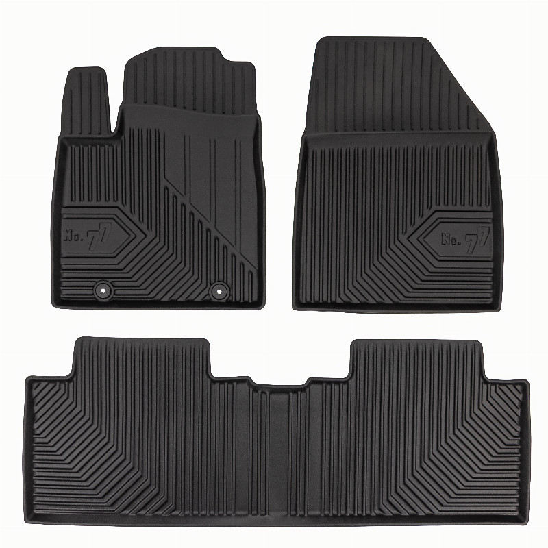 Guminiai ProLine 3D kilimėliai: (aukštos kokybės plastiko, gumos mišinys / TPE, komplektas - 4vnt., juodi, krašto aukštis 7 cm, montavimo būdas - spaustukai). AUTOMOBILIŲ KILIMĖLIAI FROGUM 3D PROLINE LUXURY • Dėl naujoviškos 3D skenavimo technologijos atitinka idealiai; • Kraštai papildomai apsaugoti – aukštis 7 cm, visada švarus automobilis; • Itin patvari medžiaga su unikalia neslystančia struktūra, atspari nešvarumams. • Išskirtinis stabilumas dėl spaustukų – lengvai montuojama spustelėjus; • Pakojo zonos apsauga – komfortas, leidžiantis nuleisti vairuotojo koją; 3D ProLine aukštos kokybės guminiai kilimėliai padeda išlaikyti automobilį švarų. Modernus ir funkcionalus dizainas, ir ypač aukštas kraštas garantuoja efektyvų vandens ir purvo surinkimą ir neleidžia jiems išbėgti. Taip automobilio salonas išlieka švarus. Pagaminti iš aukštos kokybės gumos, kurioje nėra toksiškų komponentų. Bekvapis. Kilimėliai idealiai atitinka ir puikiai priglunda prie salono grindų. Guminiai kilimėliai išlaiko savo elastingumą net esant temperatūros pokyčiams. Specialus paviršius neleidžia kilimėliams slysti vairuojant, o tai daro didelę įtaką saugumui ir kelionės patogumui