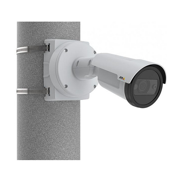 "Axis 01164-001. Type: Mount, Placement supported: Universal, Product colour: Grey, Metallic. Width: 111 mm, Depth: 42 mm, Height: 147 mm. Quantity per pack: 1 pc(s)"\n"AXIS T91B47 Pole Mount is designed for both indoor and outdoor use. It is available in two versions with different lengths of marine-grade (SS316L) stainless steel straps. One version for poles with diameter between 50–150 mm (2–6 in), and one for poles with diameter between 100-410 mm (4–16 in) in diameter. Additionally, it can be used for attaching cameras to beams. When AXIS T91B47 is used for Axis fixed dome or fixed bullet cameras, no additional accessories such as pendant kits are required, ensuring a cost-efficient solution."